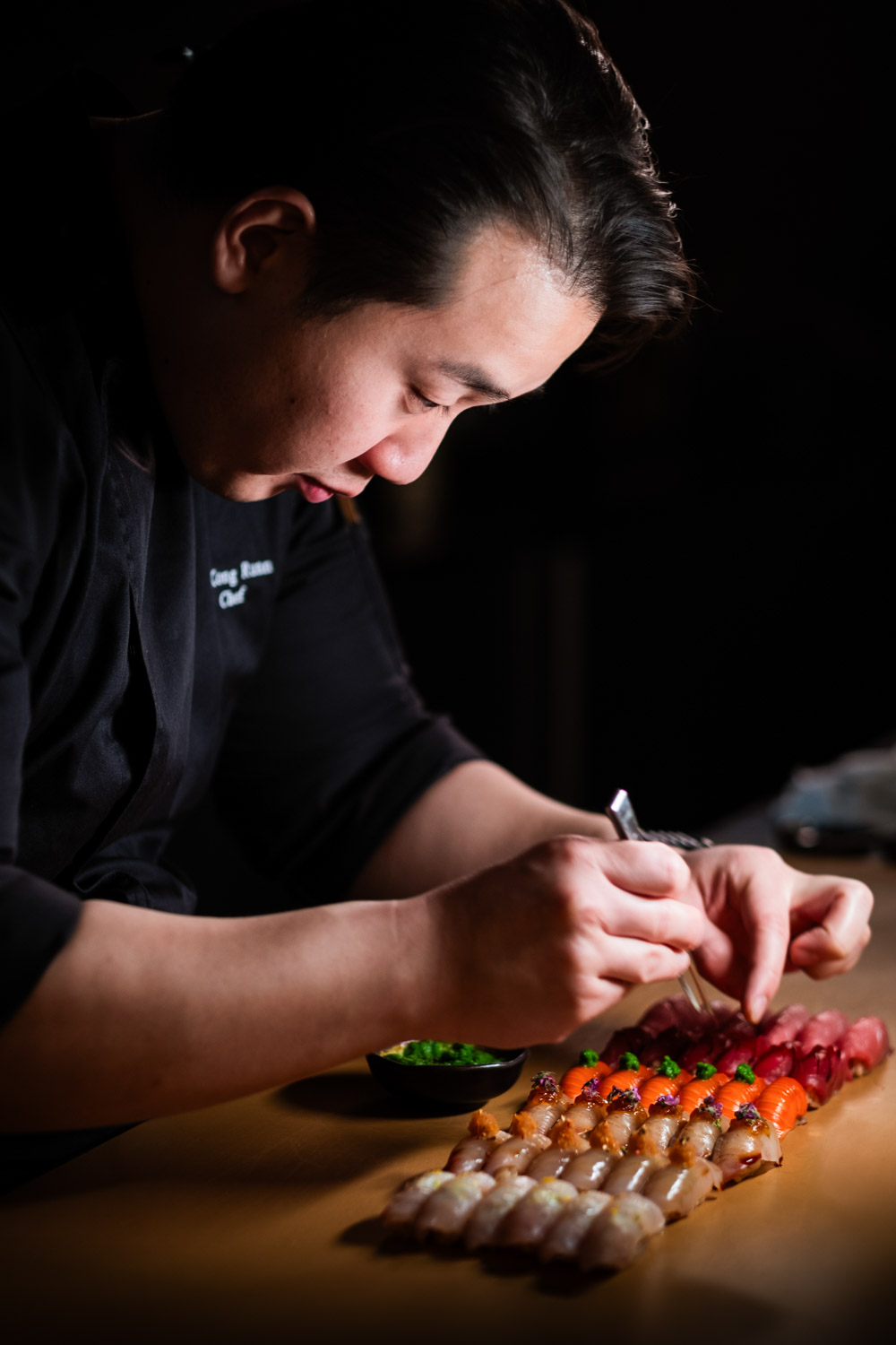A modern omakase experience blending traditional Japanese cuisine with French culinary techniques.